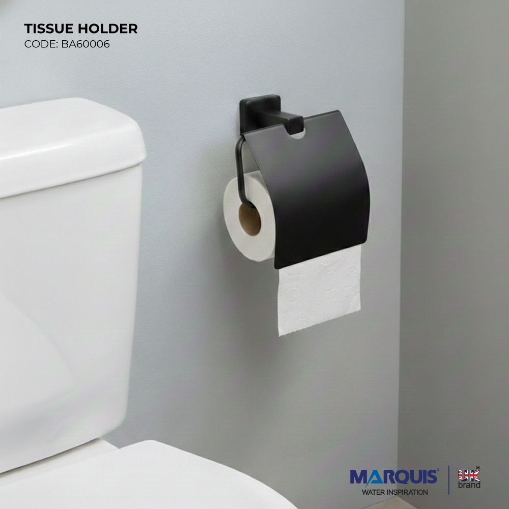 Add elegance and durability to your bathroom with the MARQUIS Tissue Holder, crafted from premium SS304 stainless steel. The sleek black finish delivers a modern, stylish look while ensuring rust resistance and long‑lasting performance. Designed for convenience and functionality, this tissue holder keeps tissues organized and accessible, making it a perfect fit for both residential and commercial spaces. Easy to install and maintain, the MARQUIS Tissue Holder combines strength, style, and practicality for a refined bathroom experience.