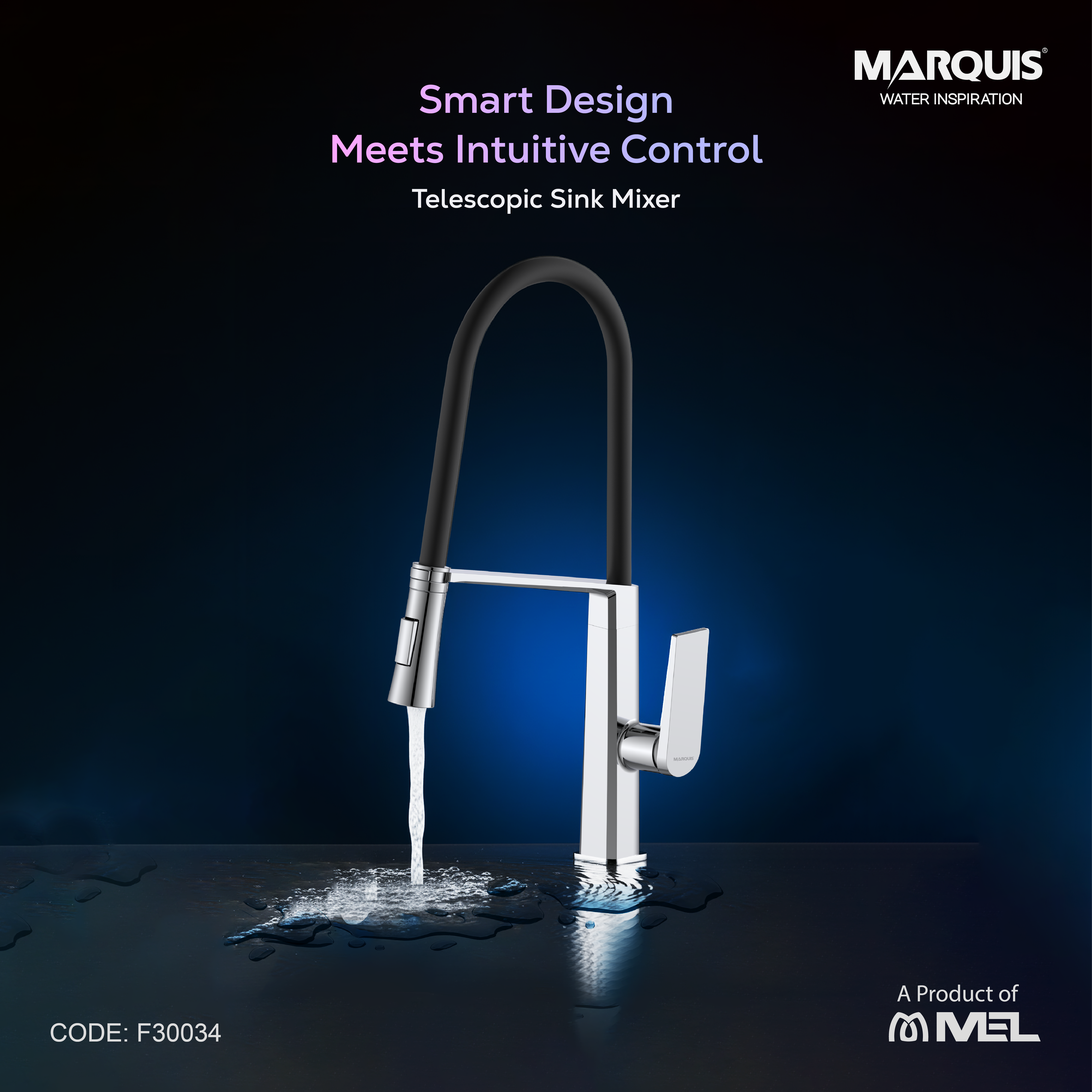 The perfect combination of style, quality, and convenience is embodied in the MARQUIS Sink Mixer, F30034 – a must-have for any modern kitchen.